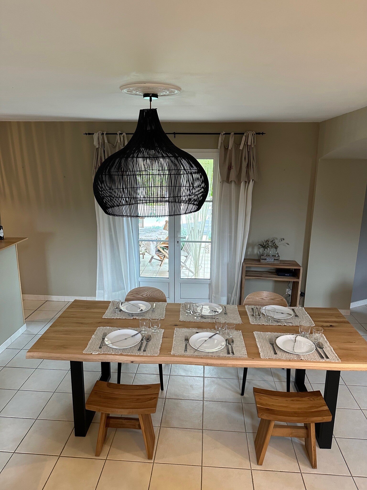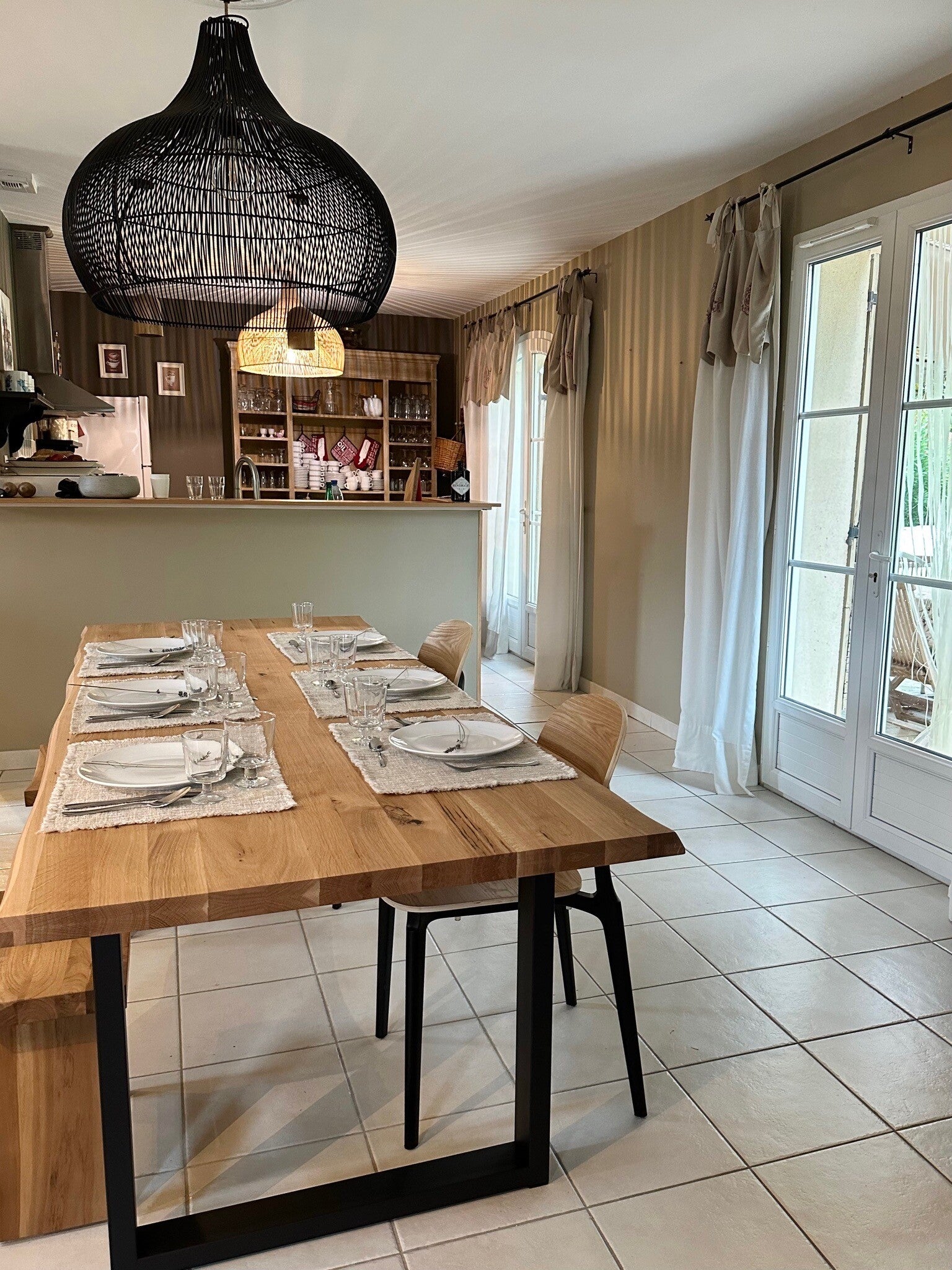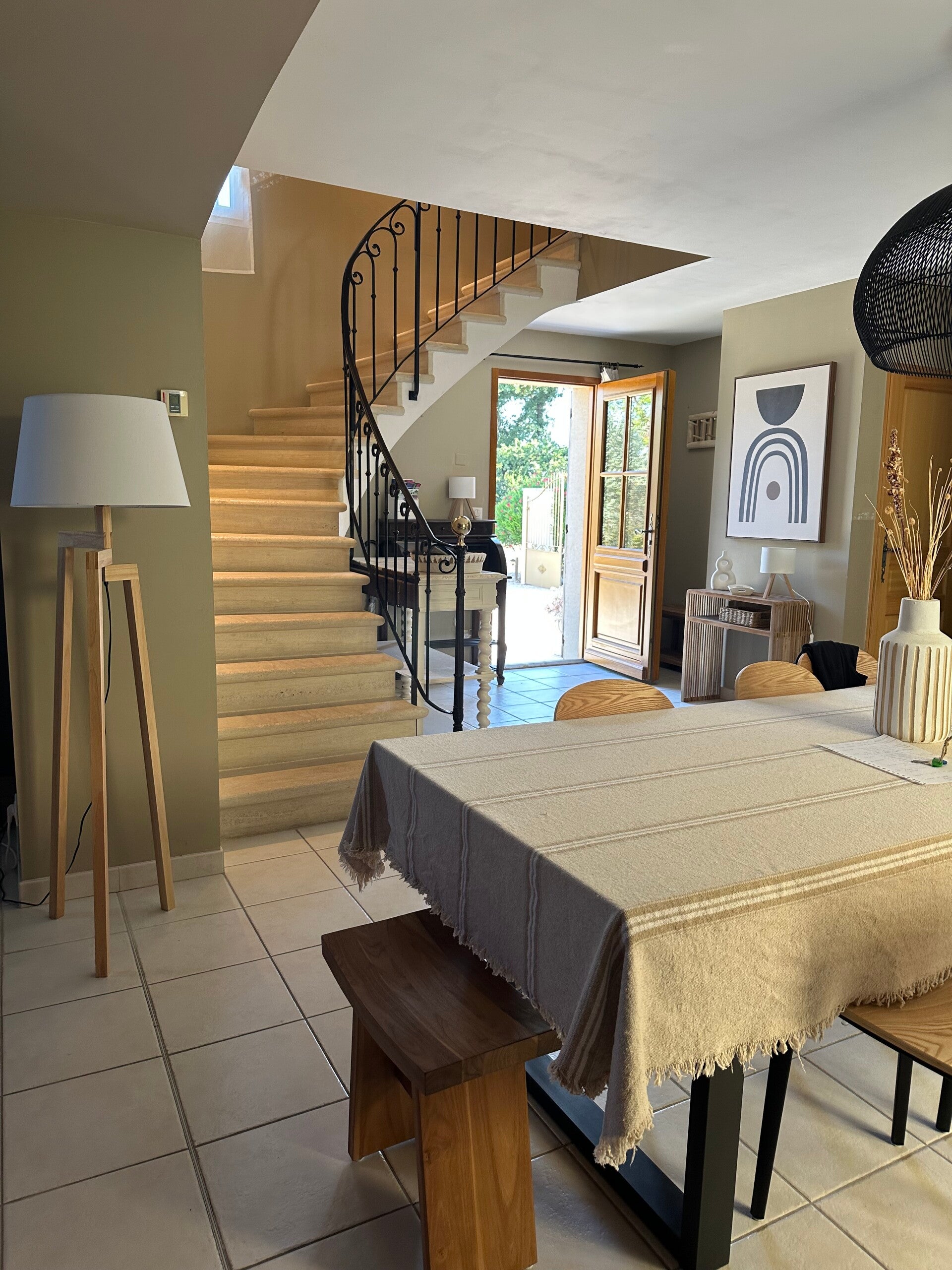 Er is een ruim salon met Fiber internet en een grote eettafel.