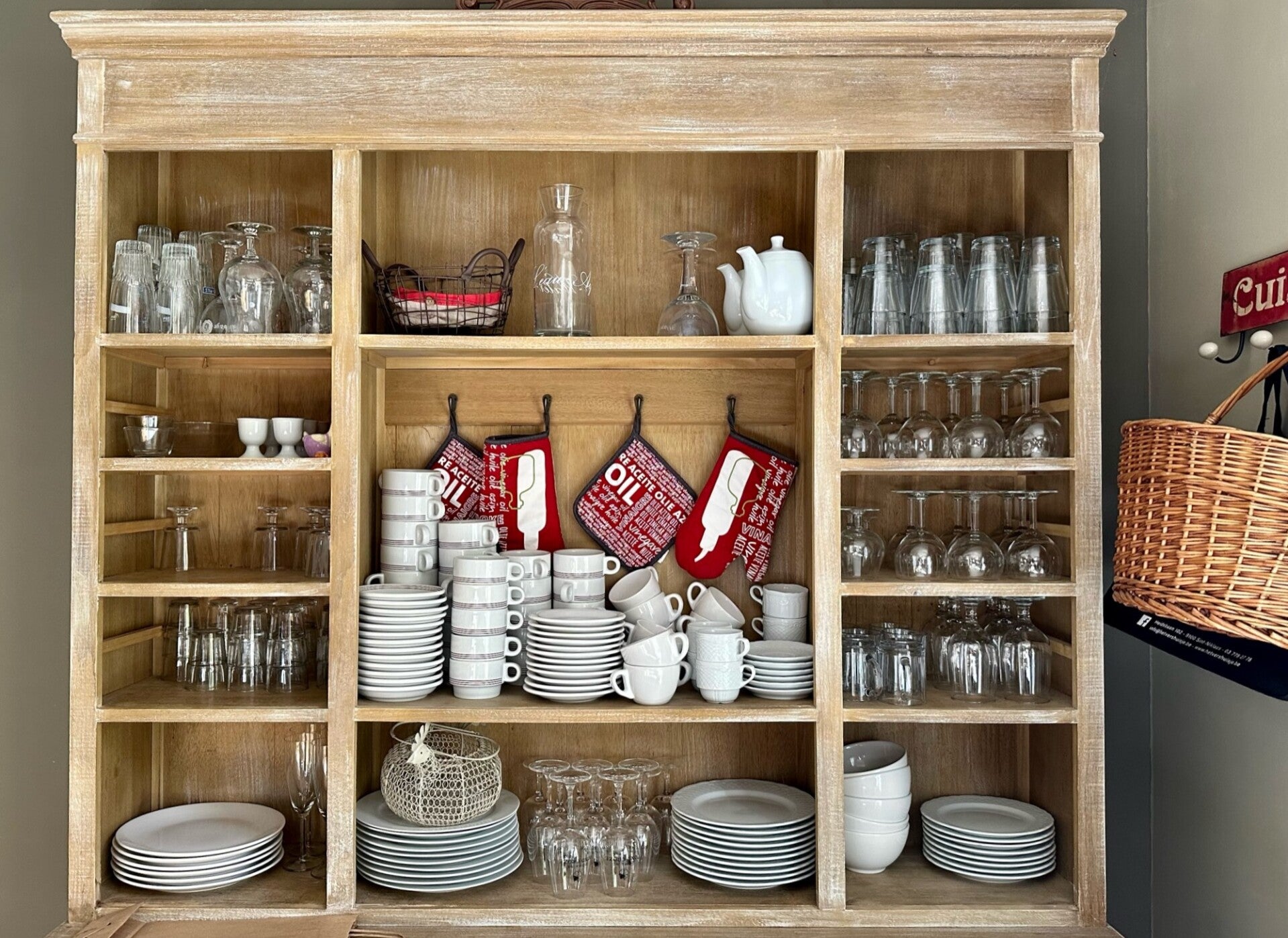 Het huis beschikt over een goed uitgeruste keuken, met alle nodige toestellen zoals vaatwasser, microgolfoven, keramische kookplaat, koffiezetapparaat, Nespresso machine, waterkoker, mixer, voldoende borden, bestek, glazen.... Verder is er ook nog 1 grote koelkast met diepvriesvak, 1 extra kleinere ijskast en een wasmachine.