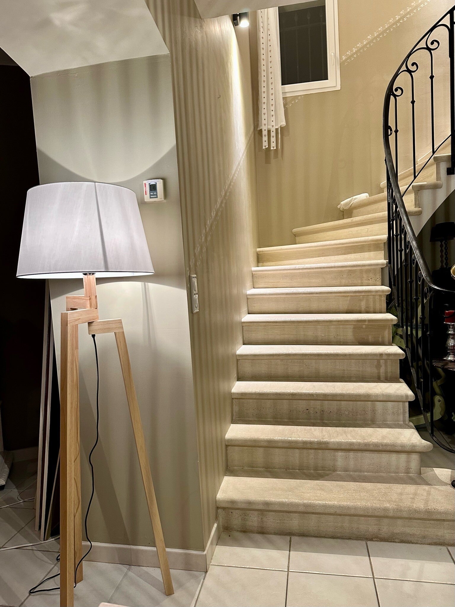 Een natuurstenen trap leidt naar de verdieping.